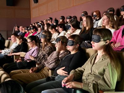 Участникам было предложено посмотреть фильм с тифлокомментированием «Пальма» с закрытыми глазами, акцентируя внимание на звуковом сопровождении. Тифлокомментарии транслировались через бесплатное мобильное приложение «Особый взгляд», специально разработанное для незрячих и слабовидящих людей. Для участия необходим смартфон, наушники и установленное приложение.