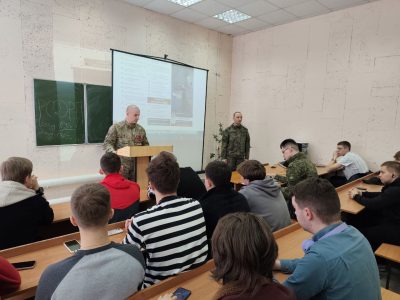 В образовательных организациях Курской области стартовала работа по популяризации военной службы и поступления в специализированные высшие учебные заведения, связанные с этой сферой. В рамках данной инициативы участник проекта «Курск. Герои» Максим Калуцких провел встречу со студентами Курского государственного университета.